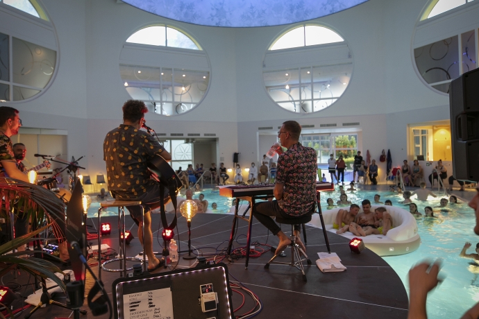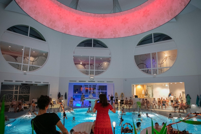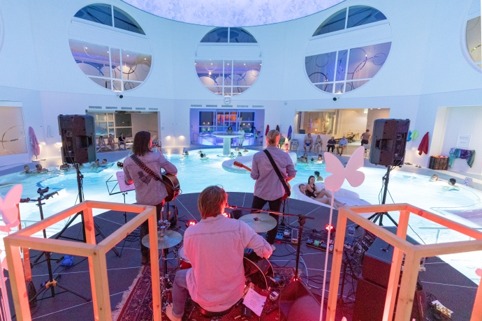 An fünf Nachmittagen verstummte für eine Stunde das Rauschen der Whirlpoole und Wasserfälle im Bad. Dafür genossen die Badegäste hinreissenden Gesang, begleitet am Piano sowie klassische Musik. Eine Holzbläser- und Brassformation sowie Querflötistinnen spielten Stücke aus unterschiedlichen Epochen. Je nach Wetter fand das Nachmittagskonzert im Bad oder draussen statt.